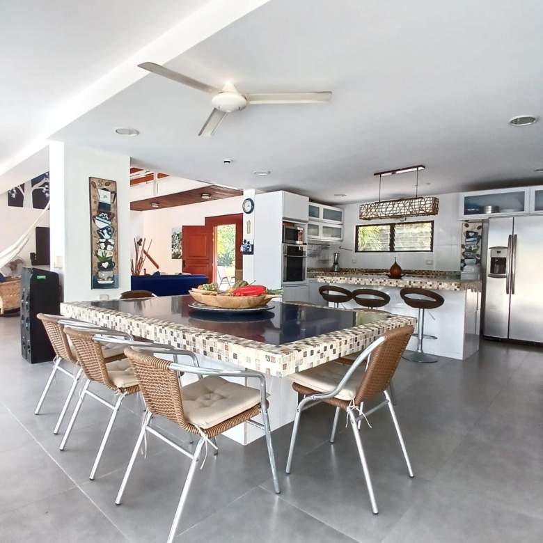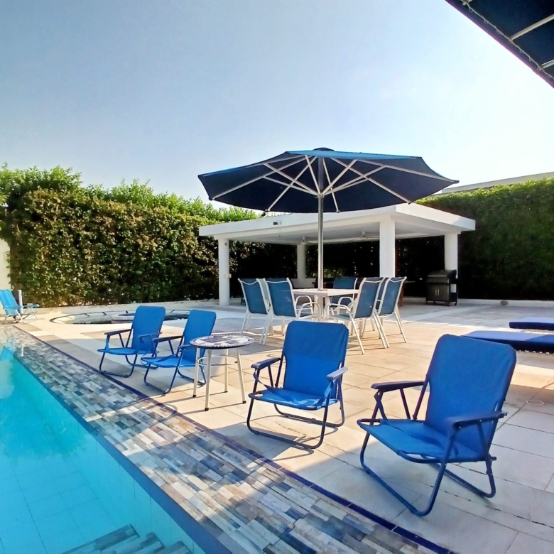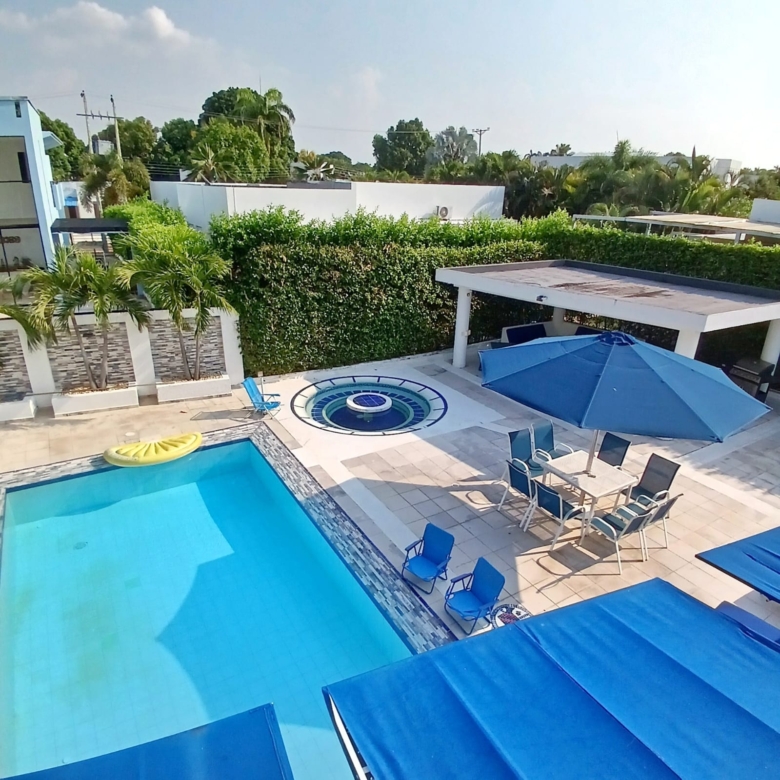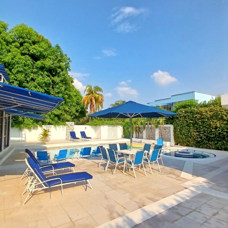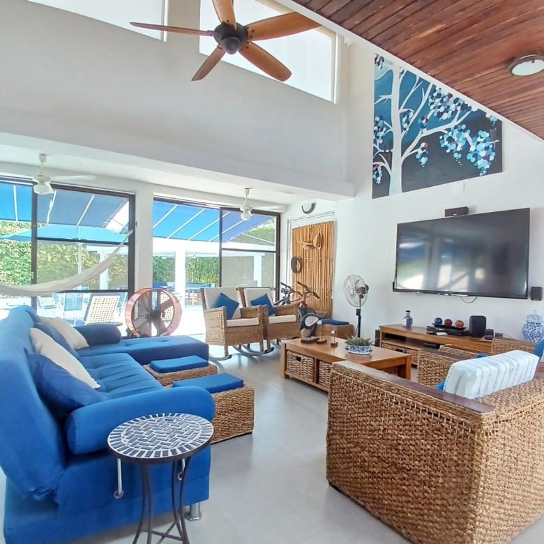 Sala, comedor, cocina, amplia zona social, sala y comedor exterior, piscina privada y jacuzzi.
